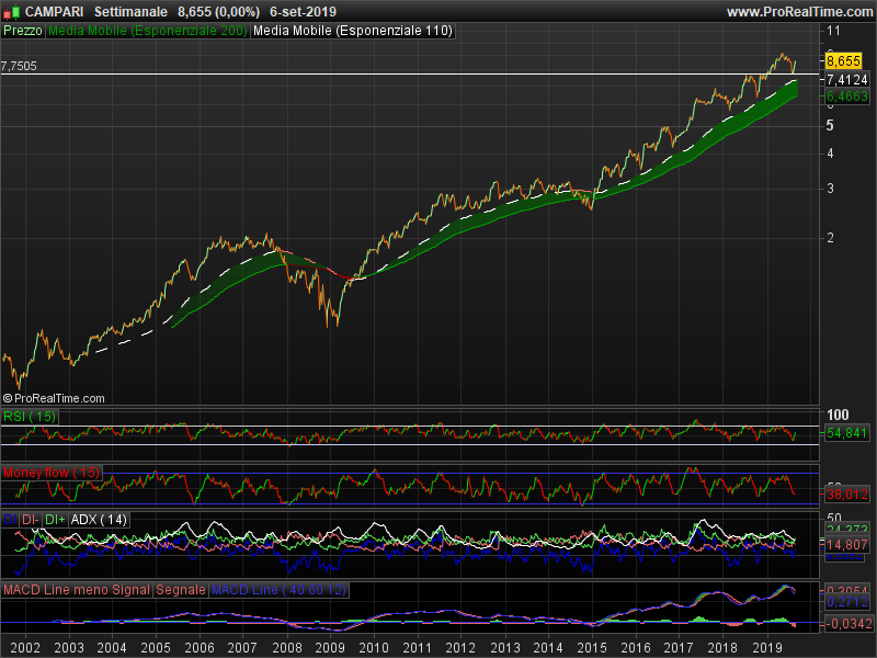 L’azienda si concentra sulla produzione di Campari e Cordial, i prodotti con la maggior penetrazione di mercato. Campari entra in borsa nel 2001 al prezzo di 31 euro per azione prima del frazionamento avvenuto il 9 maggio 2005, dell’aumento di capitale gratuito avvenuto il 10 maggio 2010 e prima del frazionamento avvenuto l’8 maggio 2017 .