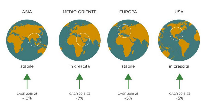Prosegue il trend positivo per i budget della Difesa iniziato nel 2014, con una crescita della spesa nel settore della Difesa negli Stati Uniti, target budget della Difesa dei Paesi NATO al 2% del PIL e come mercati più appetibili Asia e Medio Oriente.
