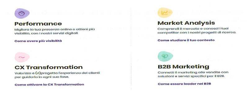 Nel corso dell’anno è stata lanciata la nuova piattaforma dedicata ai Marketing Services “Cerved On”, focalizzata su quattro aree di sviluppo.