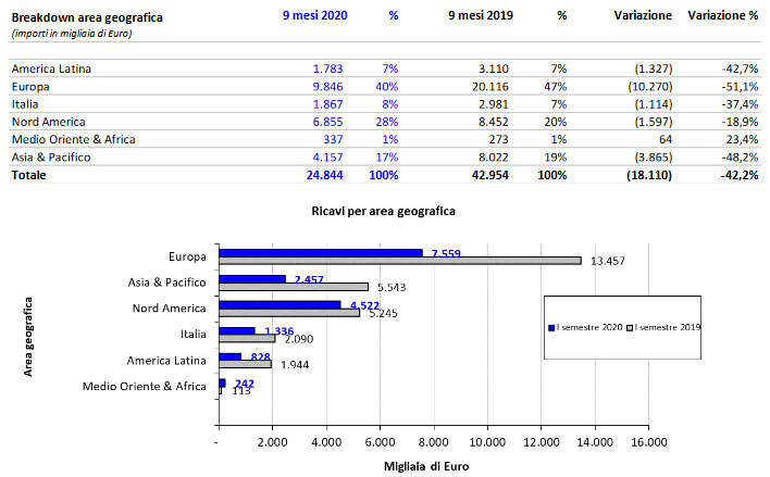 Il 13 settembre la società ha pubblicato i dati dei primi 9 mesi 2020, che sono in linea con i trimestri precedenti e che denotano come l’attività aziendale sia ancora fortemente impattata dalla crisi del Covid-19 il cui primo effetto rimane la forte contrazione della domanda che continua a risultare significativamente inferiore rispetto allo stesso periodo dell’anno precedente.