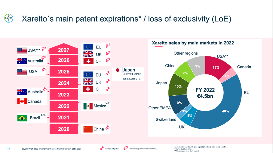 Con la sua ampia pipeline di candidati promettenti, Bayer ha le migliori possibilità di sostituire in modo più che adeguato farmaci ad alto successo come Xarelto, i cui brevetti scadranno nei prossimi anni.